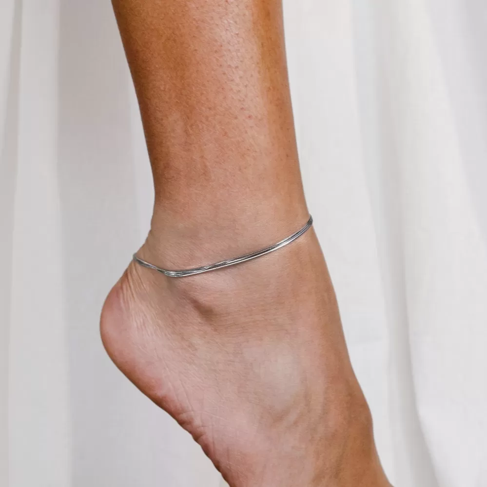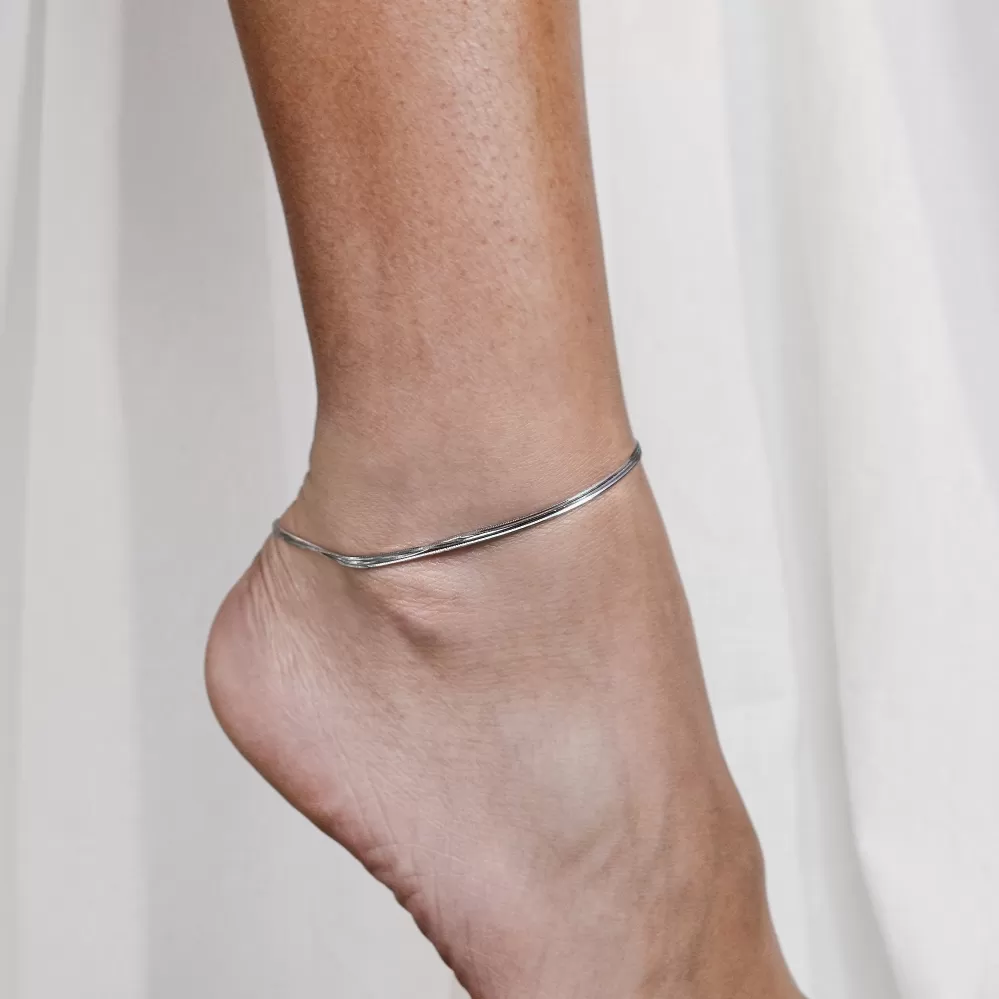 Elegantná strieborná retiazka na nohu v jednoduchom prevedení 16002.1 bez ozdôb, tri retiazky elegantne doplnia aj plesovú róbu.