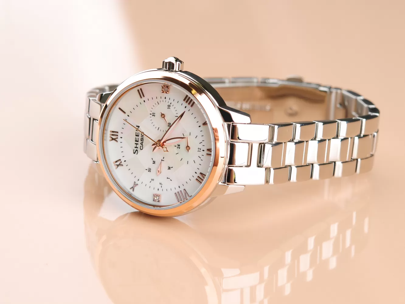 V kolekcii SHEEN spolupracuje Casio s firmou Swarovski, hodinky sú osadené tými najžiarivejšími krištáľmi z brúseného skla, ktoré dokonale dopĺňajú luxusný dizajn dámskych hodiniek.