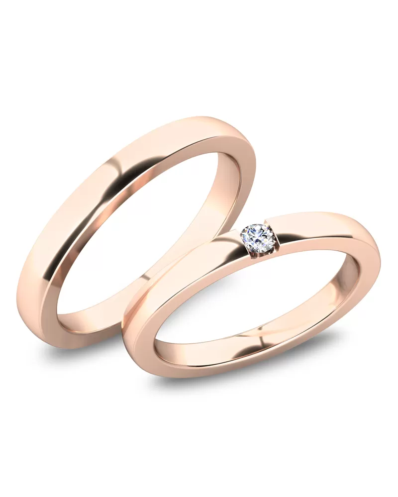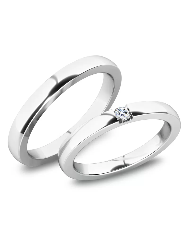 Snubné prstene moderného dizajnu v mierne polguľatom profile sú vyrobené z bieleho štrnásťkarátového zlata 585/1000 v lesklej povrchovej úprave. V dámskom prsteni je vsadený jeden okrúhly zirkón s briliantovým brusom Signity star, ktorý dodáva zirkónu maximálnu brilanciu. Do snubných prsteňov si môžete nechať staviť aj diamant vybrúsený briliantovým brusom. Diamanty oplývajú svojou krásou a vlastnosťami, ktoré sú oproti iným kameňom bezkonkurenčné. Je to najtvrdší nerast, ktorý nikdy nestratí svoju hodnotu! Diamant je kráľ všetkých drahokamov a teda aj jedným z najcennejších a preto sa oplatí do šperkov s diamantmi investovať a predovšetkým pri snubných prsteňoch, ktoré sú na celý život! Kamene sú do prsteňa vsadené "do krapničiek". Vsadzovanie zirkónov aj diamantov vykonávajú naši najskúsenejší majstri zlatníci ručne pod mikroskopom s presnosťou na 0,01 mm a preto nehrozí vypadnutie kamienkov ako to býva u strojne vyrábaných snubných prsteňov.