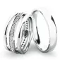 Novinka pre tento rok! Set snubných prsteňov je vyrobený z bieleho štrnásťkarátového zlata 585/1000. Prstene majú vonkajší polguľatý profil a sú v lesklej povrchovej úprave, samozrejme je možné akýkoľvek prsteň vyrobiť v matnej povrchovej úprave. Snubné prstene majú vnútorné Fit Profil - polguľatú vnútornú stranu pre príjemnejšie nosenie, nasadzovanie a odnímanie. V dámskom prsteni je vsadené po celom obvode 38ks (počet je závislý na veľkosti dámskeho prsteňa) okrúhlych zirkónov s briliantovým brusom Signity star, ktorý dáva zirkónom oslnivú brilanciu. Do snubných prsteňov si môžete nechať staviť aj diamanty. Kamene sú do prsteňa vsadené "do zrniek". Vsadzovanie zirkónov aj diamantov vykonávajú naši najskúsenejší majstri zlatníci ručne pod mikroskopom s presnosťou na 0,01 mm a preto nehrozí vypadnutie kamienkov ako to býva u strojne vyrábaných snubných prsteňov.