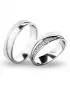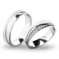 Moderné snubné prstene rovného profilu vyrobené z bieleho štrnáctikarátového zlata 585/1000 v kombinovanej povrchovej úprave lesk/mat. zirkónov s… Celý popis