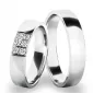 Snubné prstene jednoduchého dizajnu v mierne polguľatom profile sú vyrobené z bieleho štrnásťkarátového zlata 585/1000 v lesklej povrchovej úprave. Snubné prstene majú vnútorné Fit Profil - polguľatú vnútornú stranu pre príjemnejšie nosenie, nasadzovanie a odnímanie. V dámskom prsteni je vsadených 6 ks okrúhlych zirkónov s briliantovým brusom Signity star, ktorý dodáva zirkónom oslnivú brilanciu. Do snubných prsteňov si môžete nechať staviť aj diamanty. Kamene sú do prsteňa vsadené "do krapničiek". Vsadzovanie zirkónov aj diamantov vykonávajú naši najskúsenejší majstri zlatníci ručne pod mikroskopom s presnosťou na 0,01 mm a preto nehrozí vypadnutie kamienkov ako to býva u strojne vyrábaných snubných prsteňov.