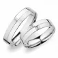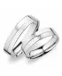 Snubné prstene vyrobené z bieleho štrnásťkarátového zlata 585/1000 rovného profilu s vnútorným fit profilom - zaoblenie vnútornej strany pre príjemnejšie nosenie s kombinovanou povrchovou úpravou lesk - zamatový mat, ktorý je oddelený jemnou ryhou. V dámskom prsteni sú vsadené dva okrúhle zirkóny s briliantovým brusom Signity star, ktorý dodáva zirkónom oslnivú brilanciu. Do snubných prsteňov si môžete nechať staviť aj diamanty. Kamene sú vsadené do zrniek. Vsadzovanie zirkónov i diamantov vykonávajú naši najskúsenejší majstri zlatníci ručne pod mikroskopom s presnosťou na 0,01mm a preto nehrozí vypadnutie kamienkov ako to býva u strojne vyrábaných snubných prsteňov. Ďalej je možné snubné prstene urobiť užšie - nižšia cena alebo širšie - vyššia cena.