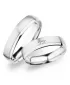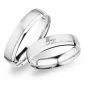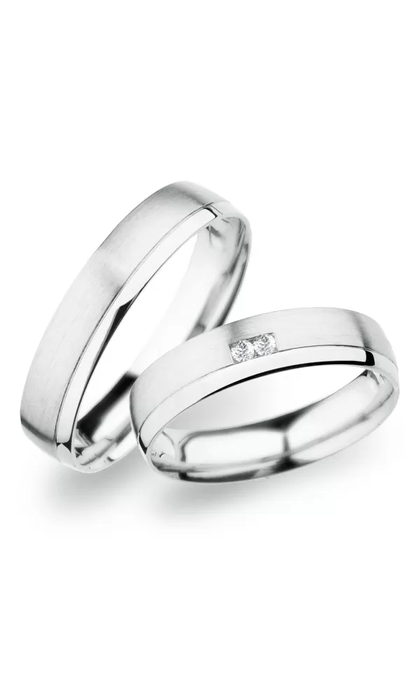 Snubné prstene vyrobené z bieleho štrnásťkarátového zlata 585/1000 mierne polguľatého profilu s vnútorným fit profilom - zaoblenie vnútornej strany pre príjemnejšie nosenie s kombinovanou povrchovou úpravou lesk - zamatový mat, ktorý je oddelený jemnou lesklou ryhou. V dámskom prsteni sú vsadené dva okrúhle zirkóny s briliantovým brusom Signity star, ktorý dodáva zirkónom oslnivú brilanciu. Do snubných prsteňov si môžete nechať staviť aj diamanty. Kamene sú vsadené do prsteňa "na hladko". Vsadzovanie zirkónov i diamantov vykonávajú naši najskúsenejší majstri zlatníci ručne pod mikroskopom s presnosťou na 0,01mm a preto nehrozí vypadnutie kamienkov ako to býva u strojne vyrábaných snubných prsteňov. Ďalej je možné snubné prstene urobiť užšie - nižšia cena alebo širšie - vyššia cena.