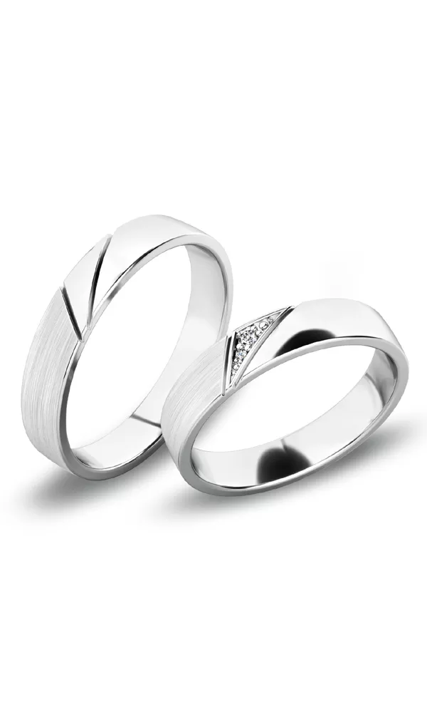 Jednoduché elegantné snubné prstene rovného profilu sú vyrobené z bieleho štrnásťkarátového zlata 585/1000 v kombinovanej povrchovej úprave lesk - zamatový mat. Snubné prstene majú vnútorné Fit Profil - polguľatú vnútornú stranu pre príjemnejšie nosenie, nasadzovanie a odnímanie. V dámskom prsteni sú vsadené 2 ks okrúhlych zirkónov s briliantovým brusom Signity star, ktorý dodáva zirkónom oslnivú brilanciu. Do snubných prsteňov si môžete nechať staviť aj diamanty. Kamene sú do prsteňa vsadené "do krapničiek". Vsadzovanie zirkónov aj diamantov vykonávajú naši najskúsenejší majstri zlatníci ručne pod mikroskopom s presnosťou na 0,01 mm a preto nehrozí vypadnutie kamienkov ako to býva u strojne vyrábaných snubných prsteňov.
