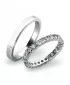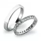 Snubné prstene rovného profilu sú vyrobené z bieleho štrnásťkarátového zlata 585/1000 v lesklej povrchovej úprave. Snubné prstene majú vnútorné Fit Profil - polguľatú vnútornú stranu pre príjemnejšie nosenie, nasadzovanie a odnímanie. V dámskom prsteni je vsadených dvadsaťsedem zirkónov s briliantovým brusom Signity star, ktorý dodáva zirkónom oslnivú brilanciu. Do snubných prsteňov si môžete nechať staviť aj diamanty. Kamene sú do prsteňa vsadené "do krapničiek". Vsadzovanie zirkónov aj diamantov vykonávajú naši najskúsenejší majstri zlatníci ručne pod mikroskopom s presnosťou na 0,01 mm a preto nehrozí vypadnutie kamienkov ako to býva u strojne vyrábaných snubných prsteňov.