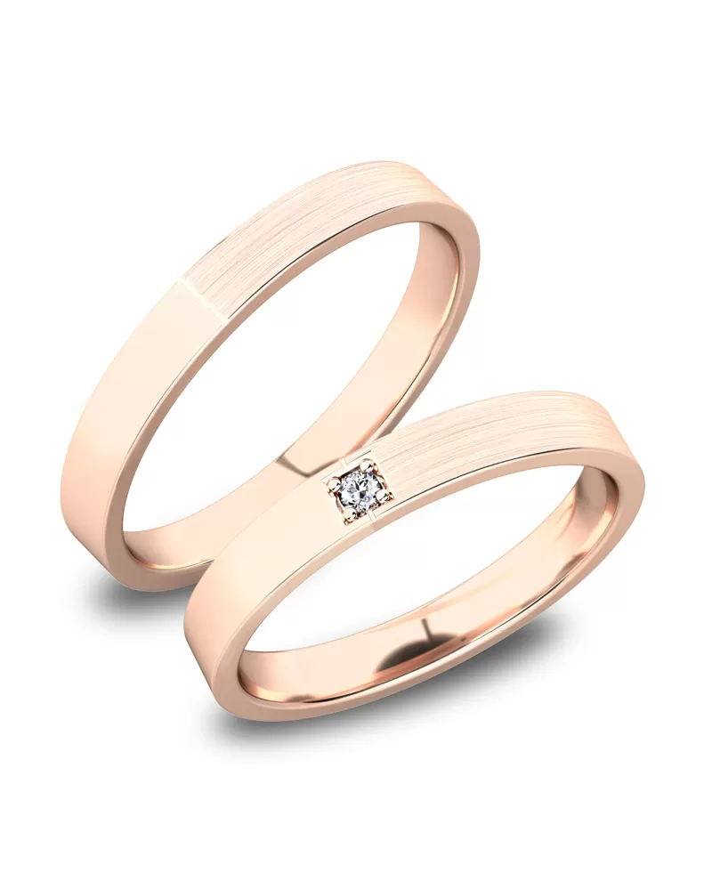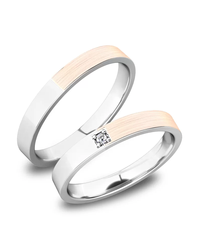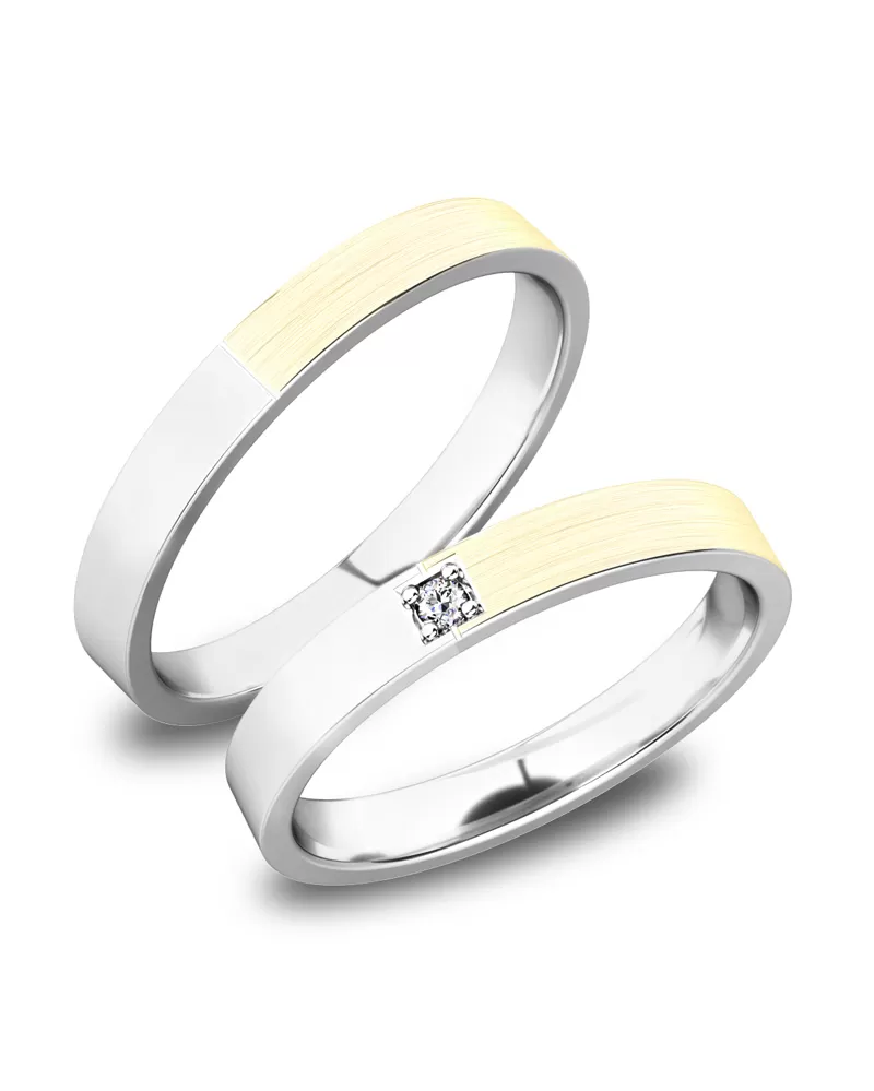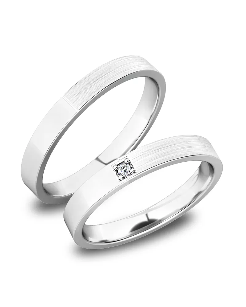 Snubné prstene rovného profilu vyrobené z bieleho štrnásťkarátového zlata 585/1000 v kombinovanej povrchovej úprave lesk - zamatový mat. Snubné prstene majú vnútorné Fit Profil - polguľatú vnútornú stranu pre príjemnejšie nosenie. V dámskom prsteni je vsadený do štvorčeka jeden okrúhly zirkón s briliantovým brusom Signity star, ktorý dodáva zirkónu maximálnu brilanciu. Do snubných prsteňov si môžete nechať staviť aj diamant vybrúsený briliantovým brusom. Diamanty oplývajú svojou krásou a vlastnosťami, ktoré sú oproti iným kameňom bezkonkurenčné. Je to najtvrdší nerast, ktorý nikdy nestratí svoju hodnotu. Diamant je kráľ všetkých drahokamov a teda aj jedným z najcennejších a preto sa oplatí do šperkov s diamantmi investovať a predovšetkým pri snubných prsteňoch, ktoré sú na celý život! Kameň je vsadený do prsteňa "do zrniek". Vsadzovanie zirkónov aj diamantov vykonávajú naši najskúsenejší majstri zlatníci ručne pod mikroskopom s presnosťou na 0,01 mm a preto nehrozí vypadnutie kamienkov ako to býva u strojne vyrábaných snubných prsteňov. Snubné prstene je možné vyrobiť v ľubovoľných úpravách napr. s viacerými kameňmi alebo vyrobiť snubné prstene užšie - nižšia cena alebo širšie - vyššia cena.