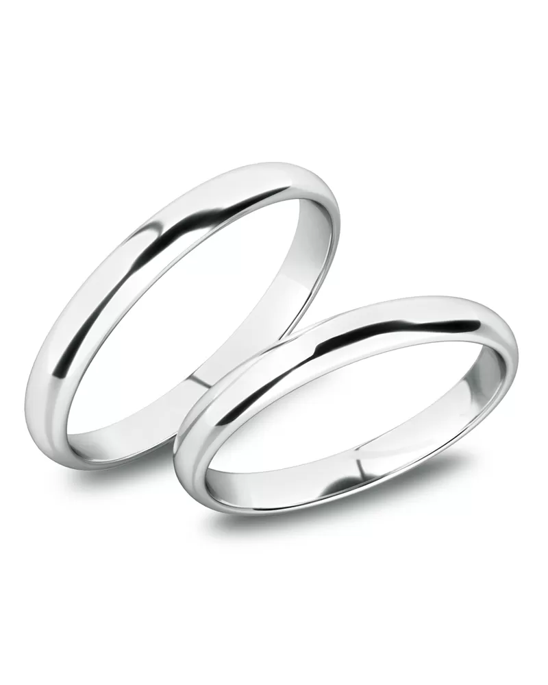 Veľmi obľúbený model snubných prsteňov, ktoré sú vyrobené z bieleho štrnásťkarátového zlata 585/1000 v lesklej povrchovej úprave v pologuľatom profile.  Tento model vyrábame aj s kameňmi. Snubné prstene je možné vyrobiť v ľubovoľných úpravách napr. je možné vyrobiť prstene užšie - nižšia cena alebo širšie - vyššia cena.