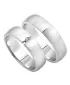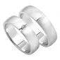 Moderné snubné prstene polguľatého profilu vyrobené z bieleho štrnásťkarátového zlata 585/000 s kombinovanou povrchovou úpravou lesk - mat as jedným okrúhlym zirkónom poprípade diamantom briliantového brusu v dámskom prsteni. Snubné prstene je možné vyrobiť z kombinácie žltého a bieleho popr. červeného zlata. Ďalšia možnosť je úprava šírky pri oboch prsteňoch.