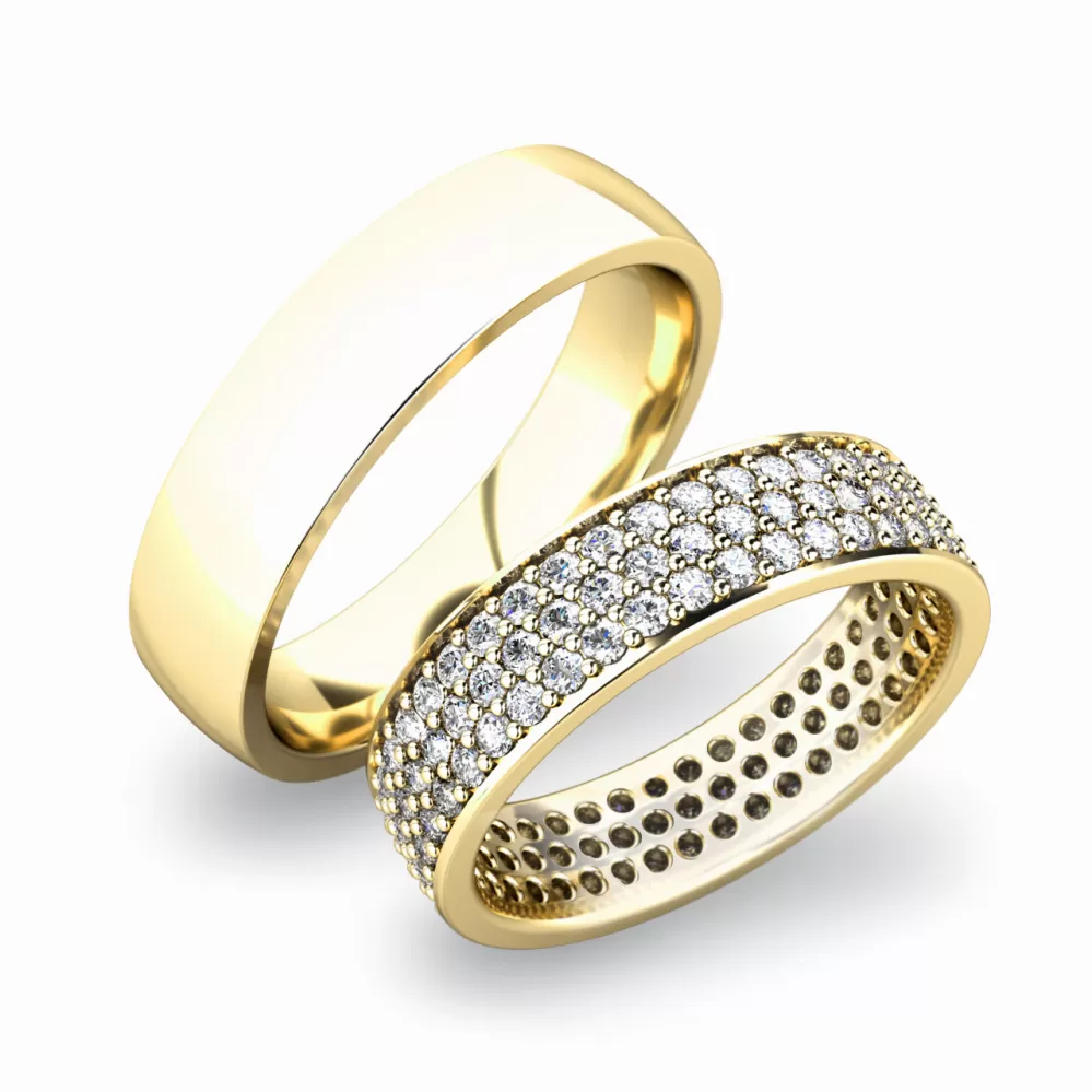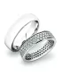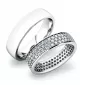 Luxusné snubné prstene v mierne polguľatom profile sú vyrobené z bieleho štrnásťkarátového zlata 585/1000 v lesklej povrchovej úprave v nadčasovom dizajne. Snubné prstene majú vnútorné Fit Profil - polguľatú vnútornú stranu pre príjemnejšie nosenie, nasadzovanie a odnímanie. V dámskom prsteni je vsadených sto dvadsaťtri okrúhlych zirkónov s briliantovým brusom Signity star, ktorý dodáva zirkónom oslnivú brilanciu. Do snubných prsteňov si môžete nechať staviť aj diamanty. Kamene sú vsadené "do zrniek". Vsadzovanie zirkónov aj diamantov vykonávajú naši najskúsenejší majstri zlatníci ručne pod mikroskopom a preto nehrozí vypadnutie kamienkov ako to býva u strojne vyrábaných snubných prsteňov.
