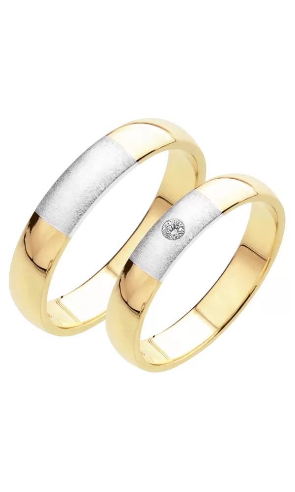 Kombinované snubné prstene zo žltého a bieleho štrnástikarátového zlata 585/1000 polguľatého profilu s kombinovanou povrchovou úpravou lesk -… Celý popis