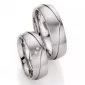 Široké snubné prstene z chirurgickej ocele polguľatého profilu s tromi okrúhlymi diamantmi briliantového brusu v dámskom prsteni. Diamanty vynikajú… Celý popis