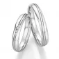 Elegantné snubné prstene z chirurgickej ocele v mierne polguľatom profile s kombinovanou povrchovou úpravou zamatový mat – lesk. Kedy lesklé prúžky sú oddelené matnými ryhami uprostred.