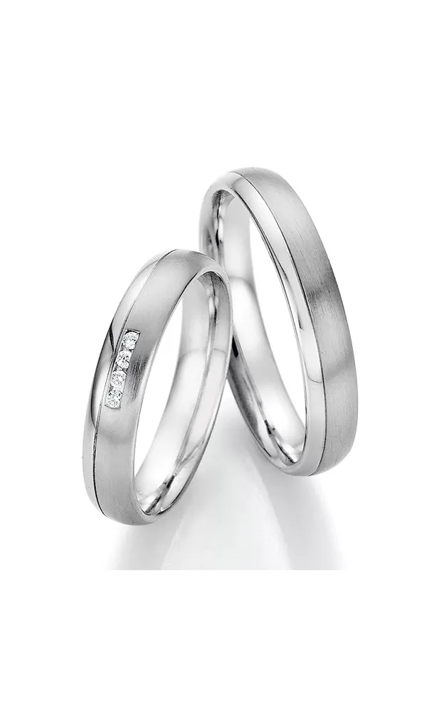 Elegantné snubné prstene z chirurgickej ocele v mierne polguľatom profile s kombinovanou povrchovou úpravou zamatový mat – lesk. Kedy je užší lesklý prúžok oddelený jemnou ryhou.