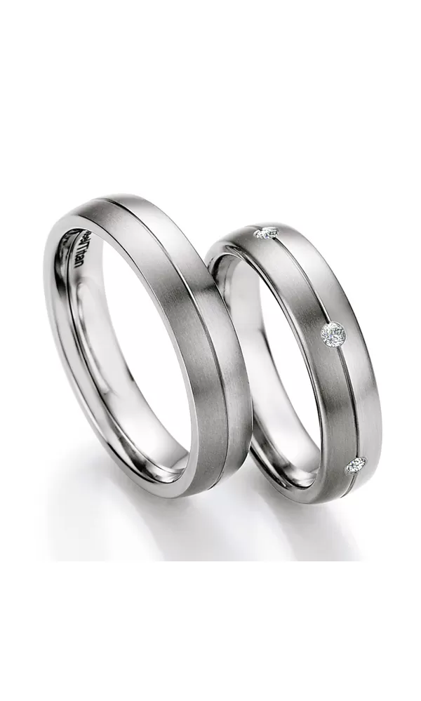Oceľové snubné prstene s titánom so šesť okrúhlymi diamantmi briliantového brusu v dámskom prsteni. Snubné prstene majú pologuľatý profil s vnútorným fit profilom – zaoblenie vnútorných stien prsteňov. Snubné prstene sú matné povrchovej úprave zamatový mat, kedy oceľ a titán sú oddelené a zvýraznené jemnou ryhou. Diamanty vynikajú svojou krásou a vlastnosťami, ktoré sú oproti iným kameňom bezkonkurenčné. Je to najtvrdší nerast, ktorý nikdy nestratí svoju hodnotu. Diamant je kráľ všetkých drahokamov a teda aj jedným z najcennejších a preto sa oplatí do šperkov s diamantmi investovať a predovšetkým pri snubných prsteňoch, ktoré sú na celý život! Vsadzovanie diamantov vykonávajú naši najskúsenejší majstri zlatníci ručne pod mikroskopom s presnosťou na 0,01 mm a preto nehrozí vypadnutie kamienkov ako to býva u strojne vyrábaných snubných prsteňov. Snubné prstene majú vnútorný fit profil - zaoblenie vnútornej strany prsteňov pre príjemnejšie nosenie, nasadzovanie a odnímanie prsteňov.