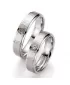 Zlaté snubné prstene vyrobené zo štrnásťkarátového bieleho zlata - 585/000 v rovnom profile v matnej povrchovej úprave s lesklými prúžkami na krajoch… Celý popis