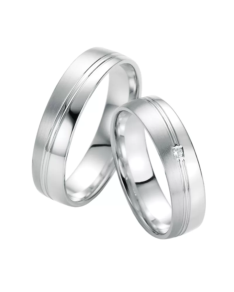 Snubné prstene s diamantom z bieleho zlata 585/1000 - štrnásť karátov vo veľmi miernom polguľatom profile v kombinovanej povrchovej úprave lesk - zamatový mat, ktorý oddeľujú jemné ryhy V dámskom prsteni je vsadený do štvorčeka svoju krásou a vlastnosťami, ktoré sú oproti iným kameňom bezkonkurenčné. Je to najtvrdší nerast, ktorý nikdy nestratí svoju hodnotu. na celý život! Vsadzovanie diamantov vykonávajú naši najskúsenejší majstri zlatníci ručne pod mikroskopom s presnosťou na 0,01mm a preto nehrozí vypadnutie kamienkov ako to býva u strojne vyrábaných snubných prsteňov. Snubné prstene majú vnútorný fit profil - zaoblenie vnútornej strany prsteňov pre príjemnejšie nosenie.