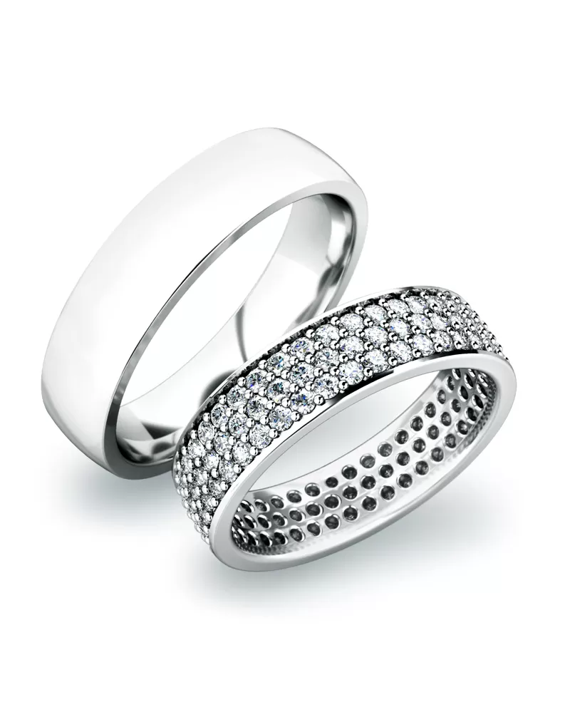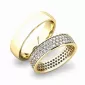 Luxusné snubné prstene v mierne polguľatom profile sú vyrobené zo žltého štrnásťkarátového zlata 585/1000 v lesklej povrchovej úprave v nadčasovom dizajne. Snubné prstene majú vnútorné Fit Profil - polguľatú vnútornú stranu pre príjemnejšie nosenie, nasadzovanie a odnímanie. V dámskom prsteni je vsadených sto dvadsaťtri okrúhlych zirkónov s briliantovým brusom Signity star, ktorý dodáva zirkónom oslnivú brilanciu. Do snubných prsteňov si môžete nechať staviť aj diamanty. Kamene sú vsadené "do zrniek". Vsadzovanie zirkónov aj diamantov vykonávajú naši najskúsenejší majstri zlatníci ručne pod mikroskopom a preto nehrozí vypadnutie kamienkov ako to býva u strojne vyrábaných snubných prsteňov.