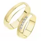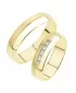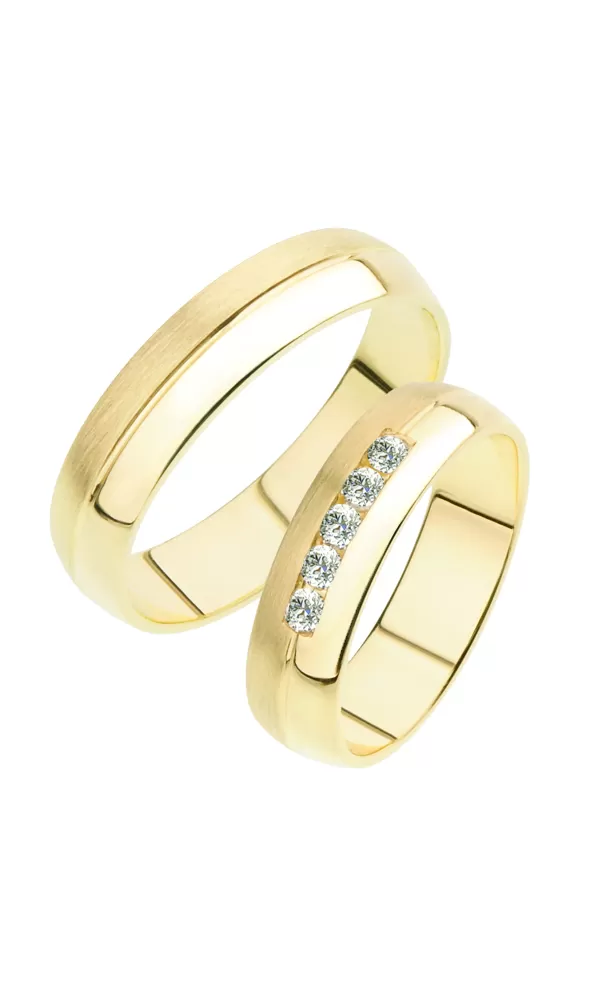 Veľmi obľúbený vzor snubných prsteňov pologuľatého profilu vyrobené zo žltého štrnáctikarátového zlata 585/1000 s kombinovanou povrchovou úpravou lesk - zamatový mat a s lesklou ryžou v dámskych prsteňoch. brusu. Snubné prstene je možné vyrobiť v rôznych farebných kombináciách zlata as ľubovoľným počtom kameňov napr. so siedmimi alebo s kameňmi po celom obvode prsteňa. Ďalej je možné snubné prstene urobiť užšie - nižšia cena alebo širšie - vyššia cena.