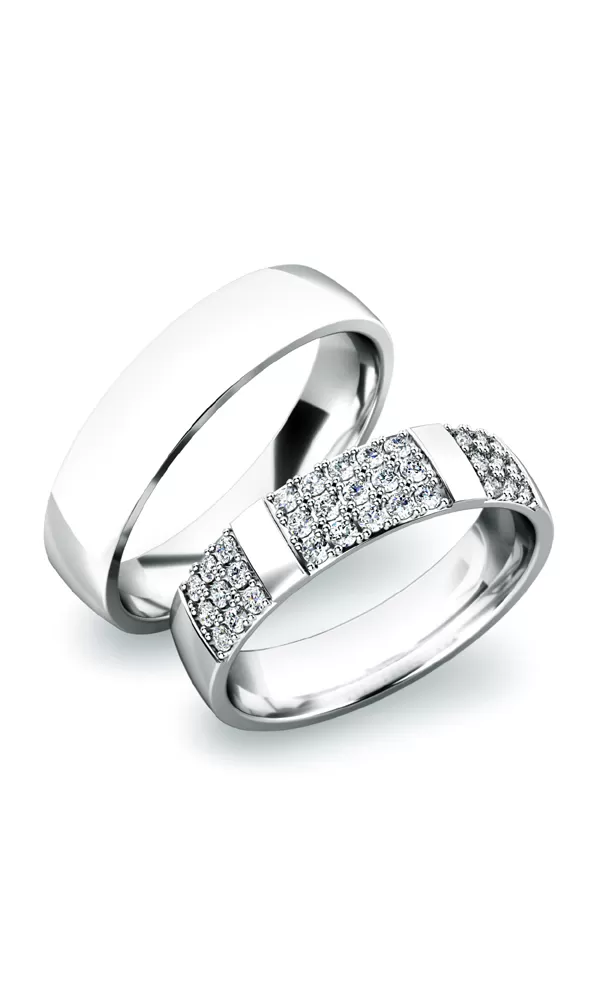 Luxusné snubné prstene v mierne polguľatom profile sú vyrobené zo žltého štrnásťkarátového zlata 585/1000 v lesklej povrchovej úprave v nadčasovom dizajne. Snubné prstene majú vnútorné Fit Profil - polguľatú vnútornú stranu pre príjemnejšie nosenie, nasadzovanie a odnímanie. V dámskom prsteni je vsadených tridsaťtri okrúhlych zirkónov s briliantovým brusom Signity star, ktorý dodáva zirkónom oslnivú brilanciu. Do snubných prsteňov si môžete nechať staviť aj diamanty. Kamene sú vsadené "do zrniek". Vsadzovanie zirkónov aj diamantov vykonávajú naši najskúsenejší majstri zlatníci ručne pod mikroskopom a preto nehrozí vypadnutie kamienkov ako to býva u strojne vyrábaných snubných prsteňov.