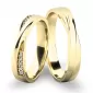Moderné snubné prstene mierne polguľatého profilu sú vyrobené zo žltého štrnásťkarátového zlata 585/1000 v lesklej povrchovej úprave. Snubné prstene majú vnútorné Fit Profil - polguľatú vnútornú stranu pre príjemnejšie nosenie, nasadzovanie a odnímanie. V dámskom prsteni je vsadených 10 ks okrúhlych zirkónov s briliantovým brusom Signity star, ktorý zaručuje zirkónom oslnivú brilanciu. Do snubných prsteňov si môžete nechať staviť aj diamanty. Kamene sú do prsteňa vsadené "do krapničiek". Vsadzovanie zirkónov aj diamantov vykonávajú naši najskúsenejší majstri zlatníci ručne pod mikroskopom s presnosťou na 0,01 mm a preto nehrozí vypadnutie kamienkov ako to býva u strojne vyrábaných snubných prsteňov.