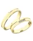 Elegantné užšie snubné prstene v rovnom profile vyrobené zo žltého štrnásťkarátového zlata 585/1000 v kombinovanej povrchovej úprave lesk - zamatový mat. Snubné prstene majú vnútorné Fit Profil - polguľatú vnútornú stranu pre príjemnejšie nosenie, nasadzovanie a odnímanie. V dámskom prsteni sú vsadené 3 ks okrúhlych zirkónov s briliantovým brusom Signity star, ktorý zaručuje zirkónom oslnivú brilanciu. Do snubných prsteňov si môžete nechať staviť aj diamanty. Kamene sú do prsteňa vsadené "do krapničiek". Vsadzovanie zirkónov aj diamantov vykonávajú naši najskúsenejší majstri zlatníci ručne pod mikroskopom s presnosťou na 0,01 mm a preto nehrozí vypadnutie kamienkov ako to býva u strojne vyrábaných snubných prsteňov.