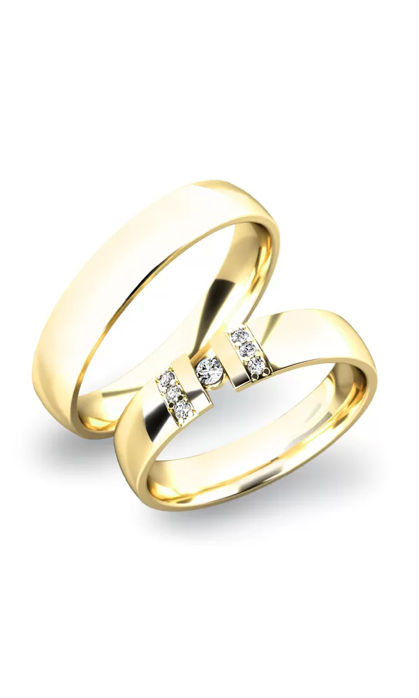 Nádherné snubné prstene v polguľatom profile sú vyrobené zo žltého štrnásťkarátového zlata 585/1000 v lesklej povrchovej úprave. Snubné prstene majú vnútorné Fit Profil - polguľatú vnútornú stranu pre príjemnejšie nosenie, nasadzovanie a odnímanie. V dámskom prsteni je vsadených sedem okrúhlych zirkónov s briliantovým brusom Signity star, ktorý dodáva zirkónom oslnivú brilanciu. Do snubných prsteňov si môžete nechať staviť aj diamanty. Kamene sú do prsteňa vsadené "do krapničiek". Vsadzovanie zirkónov aj diamantov vykonávajú naši najskúsenejší majstri zlatníci ručne pod mikroskopom s presnosťou na 0,01mm a preto nehrozí vypadnutie kamienkov ako to býva u strojne vyrábaných snubných prsteňov.