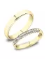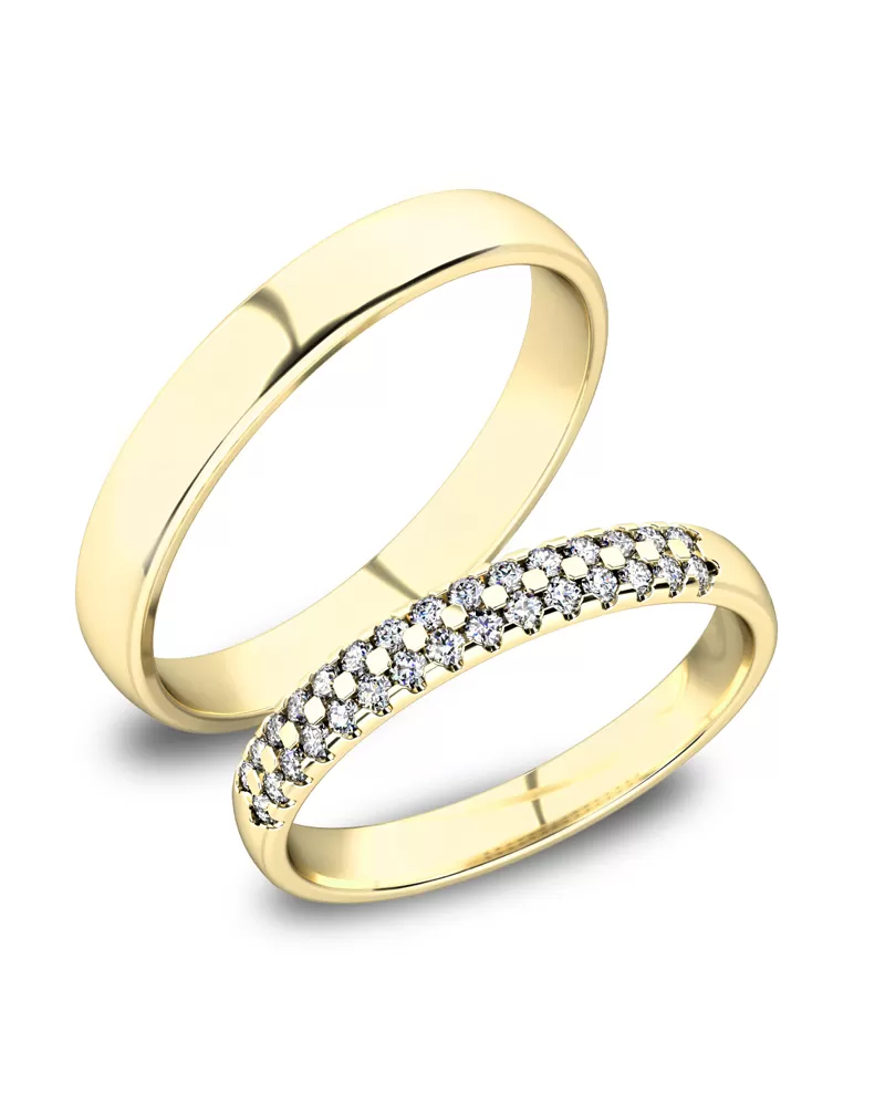 Krásne snubné prstene v polguľatom profile sú vyrobené zo žltého štrnásťkarátového zlata 585/1000 v lesklej povrchovej úprave. Snubné prstene majú vnútorné Fit Profil - polguľatú vnútornú stranu pre príjemnejšie nosenie, nasadzovanie a odnímanie. V dámskom prsteni je vsadených tridsať okrúhlych zirkónov s briliantovým brusom Signity star, ktorý dodáva zirkónom maximálnu brilanciu. Do snubných prsteňov si môžete nechať staviť aj diamanty vybrúsené briliantovým brusom. Diamanty oplývajú svojou krásou a vlastnosťami, ktoré sú oproti iným kameňom bezkonkurenčné. Je to najtvrdší nerast, ktorý nikdy nestratí svoju hodnotu. Diamant je kráľ všetkých drahokamov a teda aj jedným z najcennejších a preto sa oplatí do šperkov s diamantmi investovať a predovšetkým pri snubných prsteňoch, ktoré sú na celý život! Kamene sú do prsteňa vsadené "na hladko". Vsadzovanie zirkónov aj diamantov vykonávajú naši najskúsenejší majstri zlatníci ručne pod mikroskopom s presnosťou na 0,01 mm a preto nehrozí vypadnutie kamienkov ako to býva u strojne vyrábaných snubných prsteňov. Vďaka skladbe a štýlovo čistému vsadeniu kameňov, prsteň vyniká krásnou brilanciou kameňov!