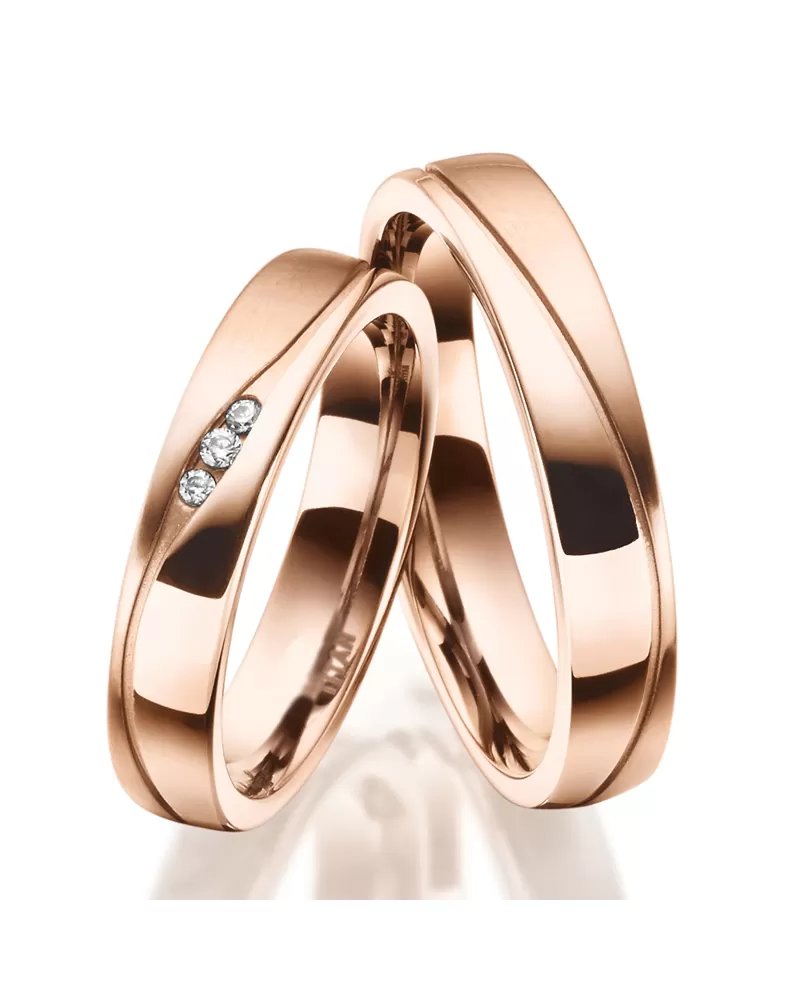 Jestli máte raději užší prsteny zvolte tento model snubních prstenů. Pánský prsten je zdoben sníženou vlnkou, která rozděluje prsten na lesklou a matnou plochu. Dámský prsten navíc zdobí tři zirkony. Zirkony jsou v briliantovém brusu Signity star, který dodává zirkonům maximální brilanci. Snubní prsteny mají vnitřní Fit Profil – půlkulatou vnitřní stranu pro příjemnější nošení, nasazování a sundávání.