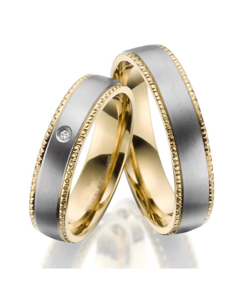 Elegantné titánové snubné prstene v mierne polguľatom profile. Snubné prstene sú v matnej povrchovej úprave a zdobené sú postranným zdobením, ktoré… Celý popis