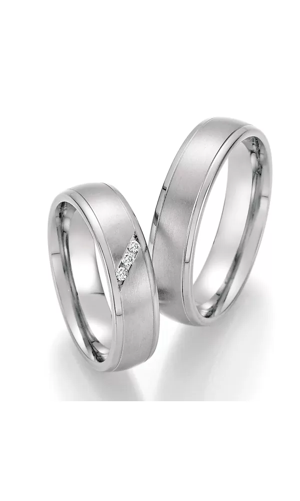 Elegantné titánové snubné prstene v mierne polguľatom profile s kombinovanou povrchovou úpravou zamatový mat – lesk. Kedy matný prúžok uprostred je zvýraznený jemnými ryhami. V dámskom prsteni sú vsadené tri okrúhle diamanty briliantového výbrusu. Diamanty vynikajú svojou krásou a vlastnosťami, ktoré sú oproti iným kameňom bezkonkurenčné. Je to najtvrdší nerast, ktorý nikdy nestratí svoju hodnotu. Diamant je kráľ všetkých drahokamov a teda aj jedným z najcennejších a preto sa oplatí do šperkov s diamantmi investovať a predovšetkým pri snubných prsteňoch, ktoré sú na celý život! Vsadzovanie diamantov vykonávajú naši najskúsenejší majstri zlatníci ručne pod mikroskopom s presnosťou na 0,01 mm a preto nehrozí vypadnutie kamienkov ako to býva u strojne vyrábaných snubných prsteňov. Snubné prstene majú vnútorný fit profil - zaoblenie vnútornej strany prsteňov pre príjemnejšie nosenie, nasadzovanie a odnímanie prsteňov.