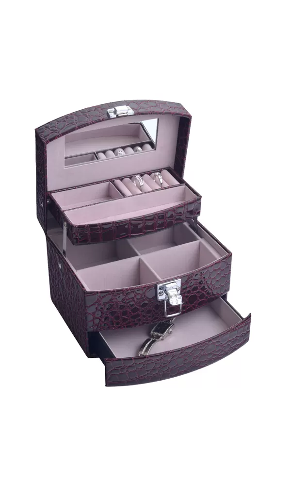 Nádherná luxusná šperkovnica Vám ľahko uchová Vaše šperky a cennosti pred znehodnotením a poškodením. Šperkovnica je navrhnutá tak, aby sa Vám tam pohodlne zmestili náušnice, prstene, retiazky aj náramky. Po otvorení šperkovnice sa automaticky vysunú tri poschodia. Každé poschodie dokonale plní svoju funkciu. Šperkovnica je tiež vybavená zrkadlom, ktoré nájdete na veku z vnútornej strany a úchytom pre jednoduchú manipuláciu.