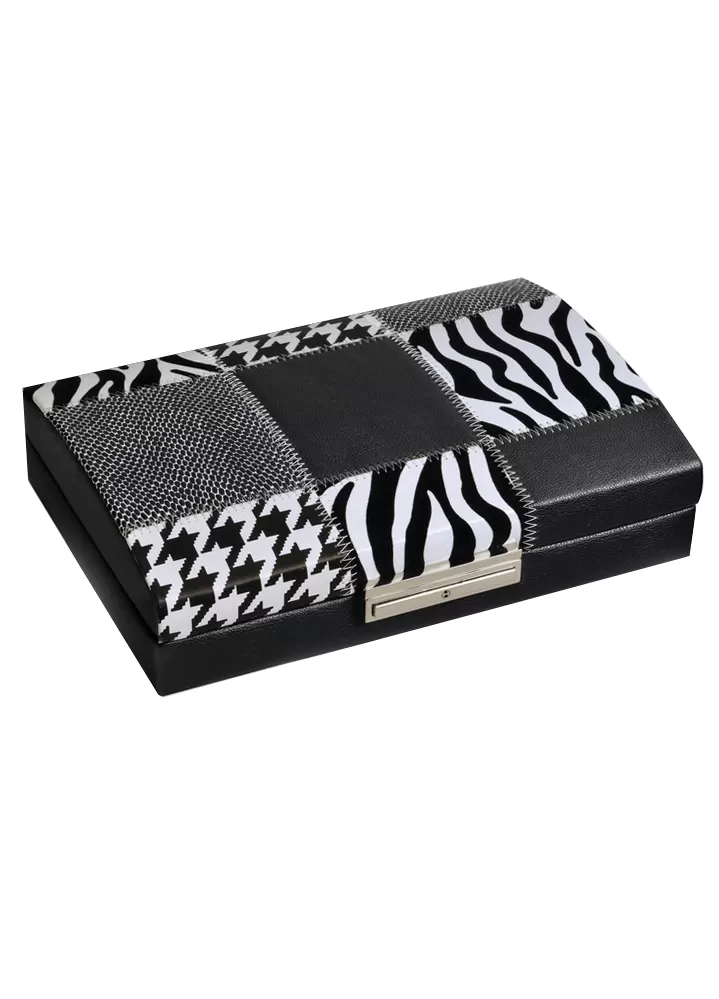 Zaujímavá šperkovnica do ktorej schováte všetky svoje poklady. Šperkovnica je potiahnutá koženkou v kombinácii čiernej a bielej farby. Veko… Celý popis