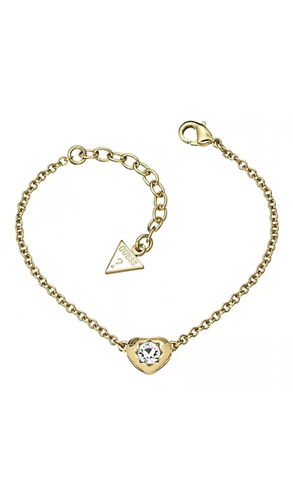 Nechajte sa rozmaznávať luxusnými šperkami značky Guess. Napríklad týmto oslnivým náramkom UBB51414 z bižutérneho kovu v zlatej farbe v lesklej povrchovej úprave. Náramok je jednoduchý a jemný zdobený srdiečkom s jedným čírym kryštálom. Dĺžka náramku GuessUBB51414 je 16cm, s využitím retiazky s logom Guess 4cm, je možné náramok zapnúť v dĺžke 16 až 20 cm.