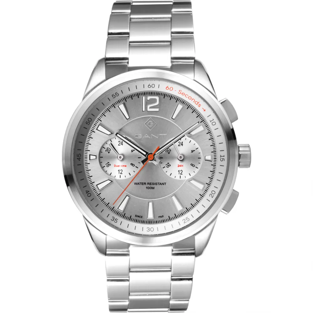 Funkčné a štýlové hodinky vhodné do zamestnania aj na voľný čas. To sú hodinkyGANT Walworth pod označením G144003. Hodinky sú vyrobené z ocele, ktorá vyniká svojou odolnosťou a farebnou stálosťou. Strieborný ciferník disponuje duálnym časom, 24 hodinovým ukazovateľom a luminiscenčnými ručičkami a indexmi.