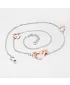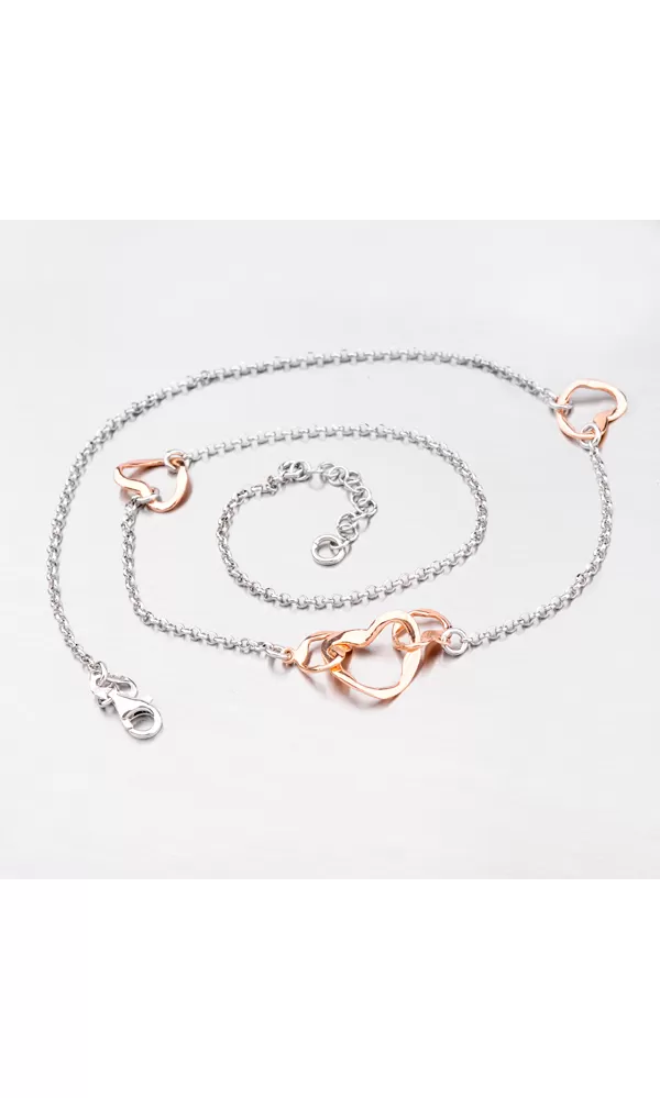 Rhodiovaná retiazka zo striebra o rýdzosti 925/1000 typu ROLO s bočným gravírovaním očiek zaujme každého vo vašom okolí. Retiazka sa skladá zo štyroch častí, ktoré sú spojené ozdobami v tvare srdca v červenej farbe. Hlavná ozdoba retiazky sú potom hneď tri prepojené srdiečka. Dĺžka tohto strieborného náhrdelníka je 42cm, ale s prídavnou predlžujúcou retiazkou, ktorá je dlhá 3cm, môžete náhrdelník zapnúť až na dĺžku 45cm. Povrch retiazky je zušľachtený rhodiovaním. Ródium je ušľachtilý drahý kov zo skupiny platinových kovov. Rhodiovaním strieborných šperkov galvanickým nanášaním tohto drahého platinového kovu sa stáva povrch šperku tvrdší, stálejší a odolnejší voči vonkajším vplyvom ako je mechanický oter, poškriabanie, nabiehanie striebra, ľudský pot, kozmetické prípravky a ďalšie. Ródium je antialergické.