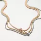 Tento náhrdelník z rhodiovaného striebra rýdzosti 925/1000 pozostáva z troch retiazok so striedajúcimi sa farbami. Jedna je strieborná, jedna ružová… Celý popis