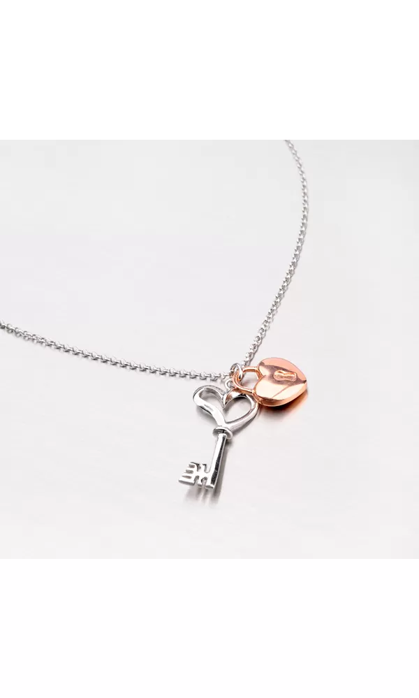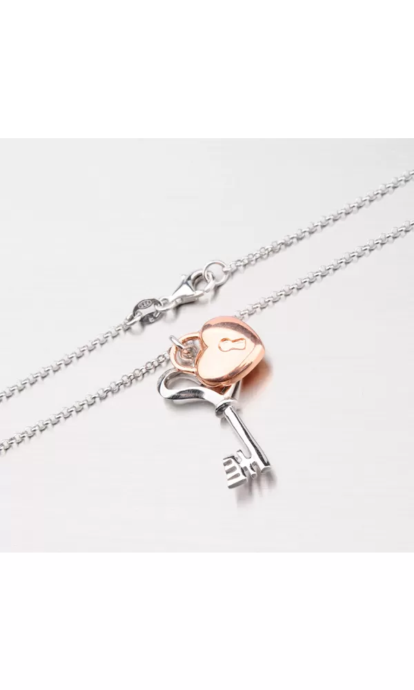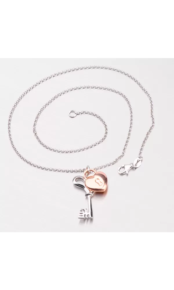 Náhrdelník s kľúčom a zámkom v tvare srdca N1502165-1628-SLX