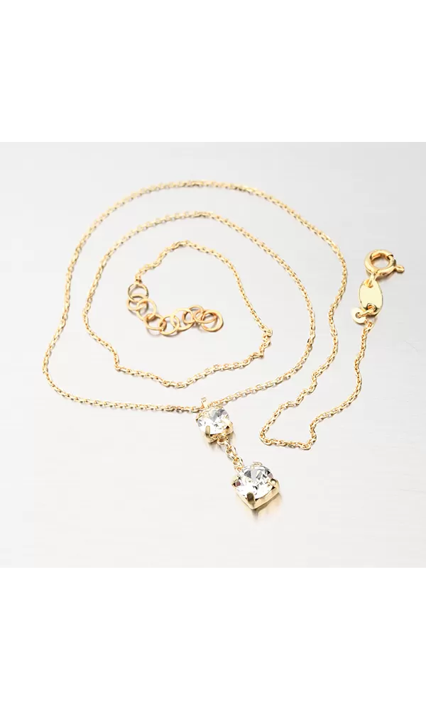 Krásny náhrdelník s retiazkou typu Anker ak tomu prívesok osadený kryštálmi. Prívesok tvoria dva kryštály pod sebou, kedy hore je jemnejší a pod ním sa nachádza výraznejší kryštál, obaja majú usadenie do štvorcového tvaru. Retiazka je navyše zdobená facetami, ktoré sú zhotovené diamantovým nástrojom. Ten dodáva vzniknutým facetám maximálny lesk, vďaka ktorému dokonale odráža svetlo a majú krásnu brilanciu zo všetkých uhlov pohľadu!