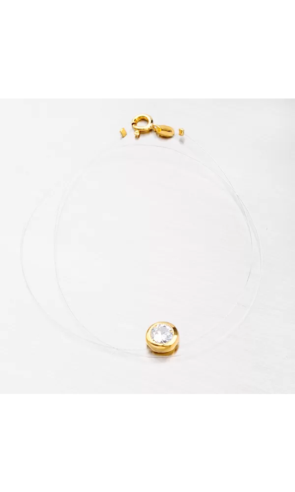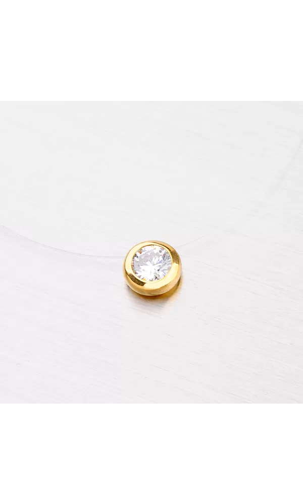 Jemný náhrdelník je zložený zo strieborného prívesku rýdzosti 925/1000 a vlasca. Prívesok je zdobený okrúhlym čírym zirkónom, ktorý dokonalé odráža svetlo. Navyše je potiahnutý PVD povrchovou úpravou vo farbe žltého zlata. Vlasec je v podstate v dekolte neviditeľný a prívesok tak pôsobí veľmi efektne. Náhrdelník sa zapína na perový krúžok.