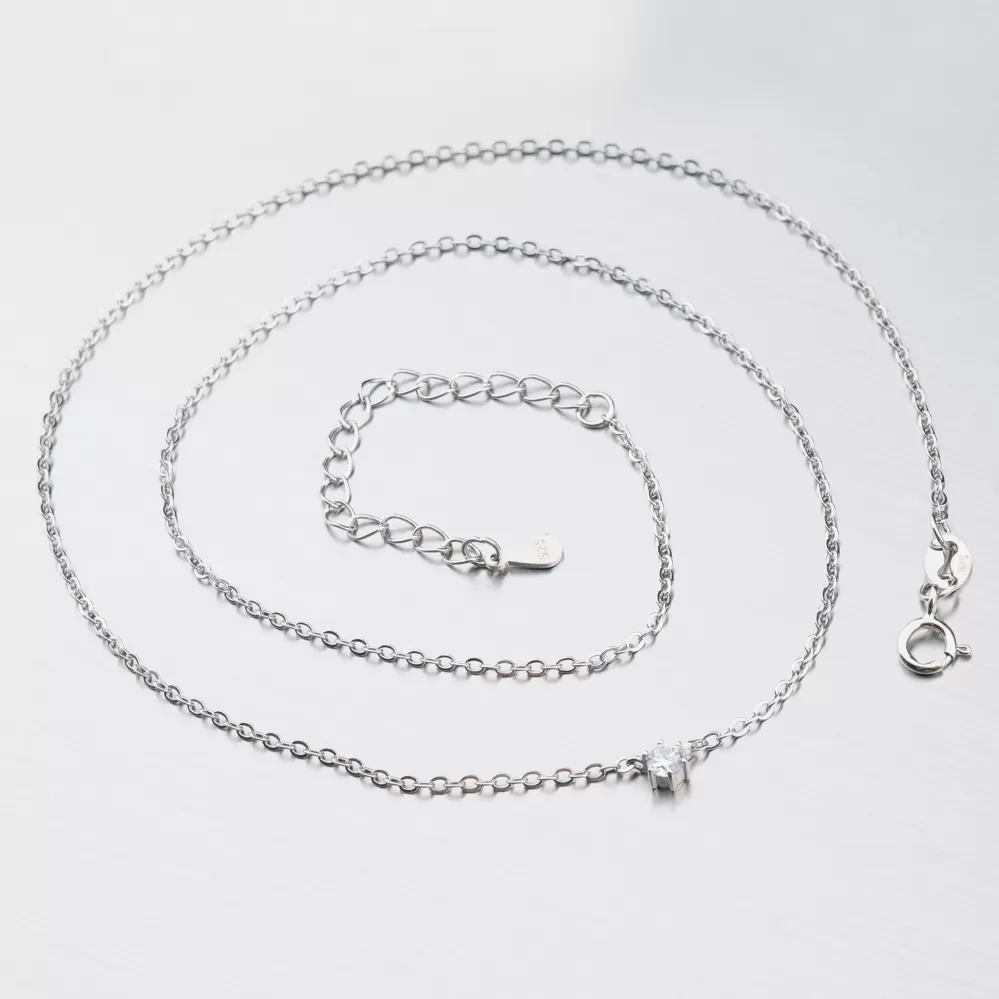 Jemná retiazka zdobí prívesok vo forme malého zirkónu. Zirkón je na retiazke pripevnený na pevno. Retiazka sa zapína na perový krúžok. cm.