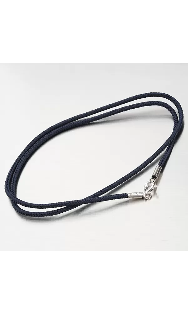 Tento náhrdelník je vyrobený v kombinácii striebra s čistotou 925/1000 a prepletený textilom v čiernej farbe. Upevnenie je na pružinovom prsteň.… Celý popis