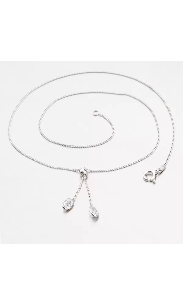 Hľadáte strieborný šperk, ktorý ozdobí váš krk? Tento náhrdelník rozžiari váš vzhľad vďaka zirkónom v oválnom tvare, ktoré sú vsadené do puzdier. Ozdoby sú od retiazky oddelené lesklou guličkou. Celý povrch náhrdelníka je zušľachtený rhodiovaním. Ródium je ušľachtilý drahý kov zo skupiny platinových kovov. Rhodiovaním strieborných šperkov galvanickým nanášaním tohto drahého platinového kovu sa stáva povrch šperku tvrdší, stálejší a odolnejší voči vonkajším vplyvom ako je mechanický oter, poškriabanie, nabiehanie striebra, ľudský pot, kozmetické prípravky a ďalšie. Ródium je antialergické.