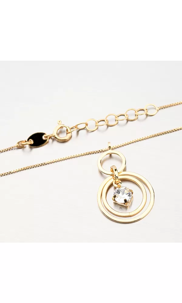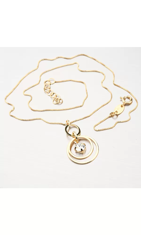 Úchvatný náhrdelník s retiazkou typu Venecia as ozdobou vo svojom strede, zdobia ho prepletené lesklé kolieska av ich centre sa nachádza žiarivý kryštál. Žltú farbu zlata dodáva technika zlatenia PVD. Prednosťou zlatenia technológií PVD je vysoká tvrdosť a odolnosť proti oteru! Ide o hrubú vrstvu, ktorá preniká do pôvodného materiálu. Zlatenie technológií PVD sa dá porovnať s približne 12 mikrónmi galvanického zlatenia, čo je vysoká hodnota, ktorá pri bežnom nosení vydrží až 12 rokov.