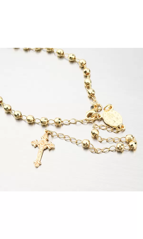 Symbolický náhrdelník s vyobrazenou postavou Madonky a potom s príveskom krížika. Žltú farbu zlata dodáva technika zlatenia PVD. Prednosťou zlatenia technológií PVD je vysoká tvrdosť a odolnosť proti oteru! Ide o hrubú vrstvu, ktorá preniká do pôvodného materiálu. Zlatenie technológií PVD sa dá porovnať s približne 12 mikrónmi galvanického zlatenia, čo je vysoká hodnota, ktorá pri bežnom nosení vydrží až 12 rokov.