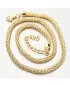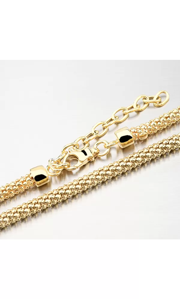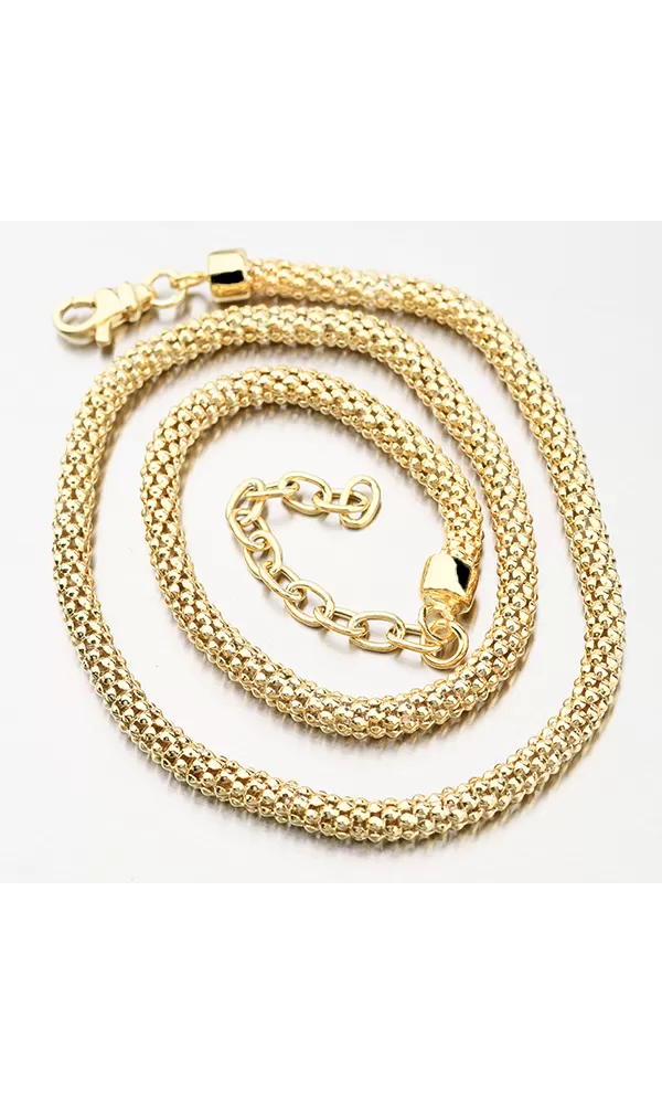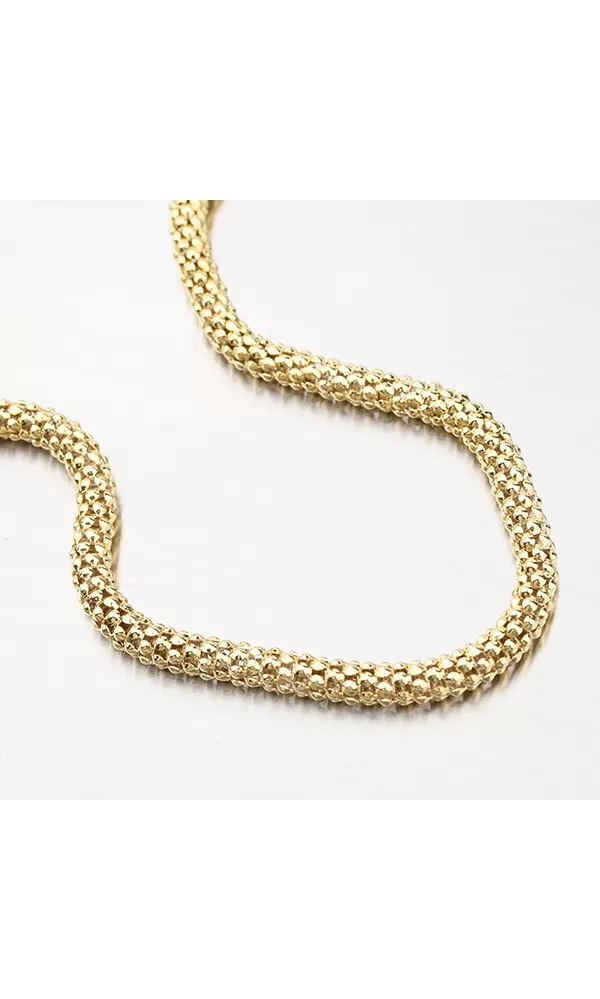 Žiarivý prepletený náhrdelník, ktorý sa bude na krku zaručene vynímať. Žltú farbu zlata dodáva technika zlatenia PVD. Prednosťou zlatenia technológií PVD je vysoká tvrdosť a odolnosť proti oteru! Ide o hrubú vrstvu, ktorá preniká do pôvodného materiálu. Zlatenie technológií PVD sa dá porovnať s približne 12 mikrónmi galvanického zlatenia, čo je vysoká hodnota, ktorá pri bežnom nosení vydrží až 12 rokov.