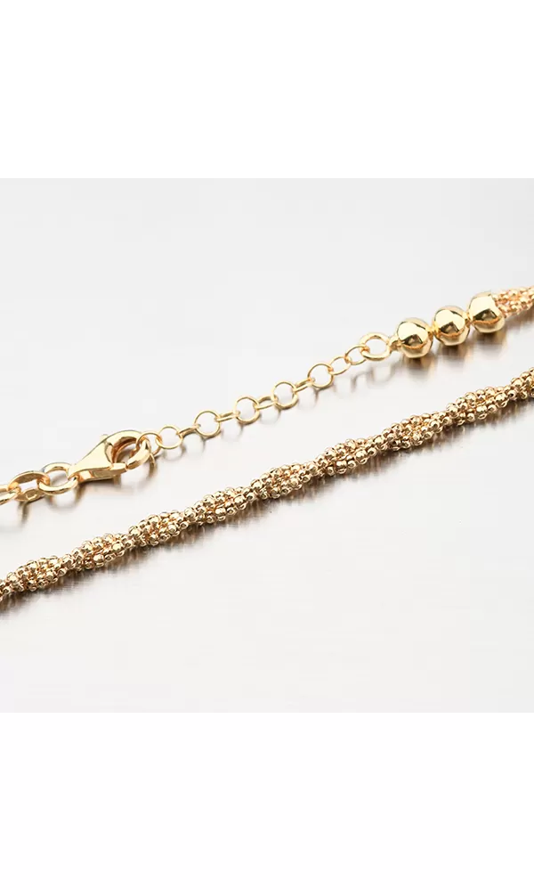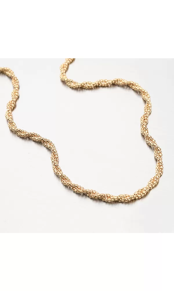 Jednoduchý ale napriek tomu luxusný spletený náhrdelník pre všetky príležitosti. Žltú farbu zlata dodáva technika zlatenia PVD. Prednosťou zlatenia technológií PVD je vysoká tvrdosť a odolnosť proti oteru! Ide o hrubú vrstvu, ktorá preniká do pôvodného materiálu. Zlatenie technológií PVD sa dá porovnať s približne 12 mikrónmi galvanického zlatenia, čo je vysoká hodnota, ktorá pri bežnom nosení vydrží až 12 rokov.