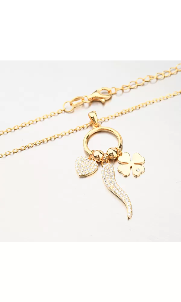 Náhrdelník je vyrobený zo striebra o rýdzosti 925/1000 v lesklej povrchovej úprave. Žltú farbu zlata dodáva technika zlatenia PVD. Prednosťou zlatenia technológií PVD je vysoká tvrdosť a odolnosť proti oteru! Ide o hrubú vrstvu, ktorá preniká do pôvodného materiálu. Zlatenie technológií PVD sa dá porovnať s približne 12 mikrónmi galvanického zlatenia, čo je vysoká hodnota, ktorá pri bežnom nosení vydrží až 12 rokov.