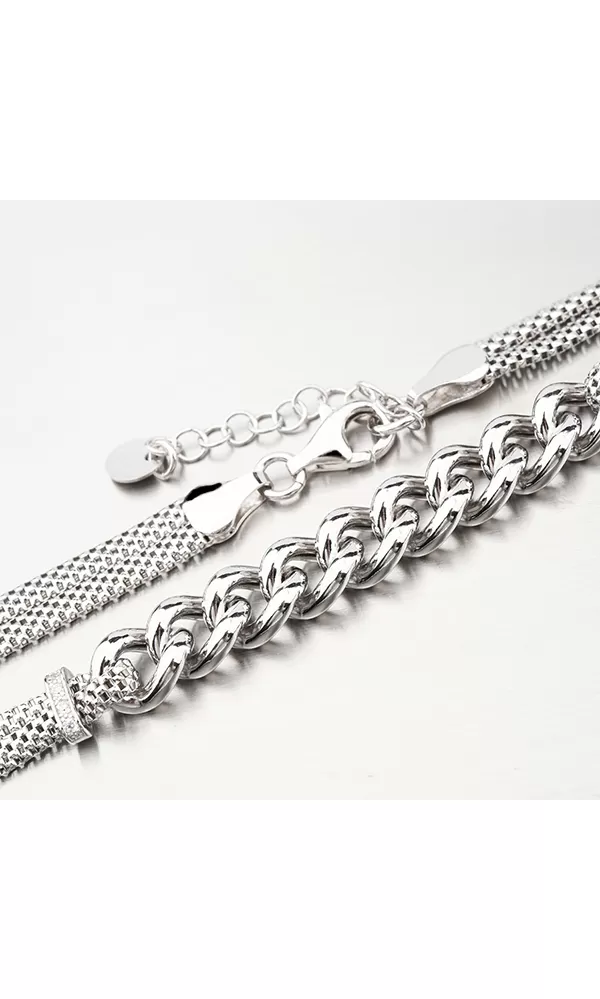 Náhrdelník je vyrobený zo striebra o rýdzosti 925/1000 s lesklým rhodiovaným povrchom. Ródium je ušľachtilý drahý kov zo skupiny platinových kovov. Rhodiovaním strieborných šperkov galvanickým nanášaním tohto drahého kovu sa stáva povrch šperku tvrdší, stálejší a odolnejší voči vonkajším vplyvom ako je mechanický oter, poškriabanie, nabiehanie striebra, ľudský pot, kozmetické prípravky a ďalšie. Ródium je antialergické.