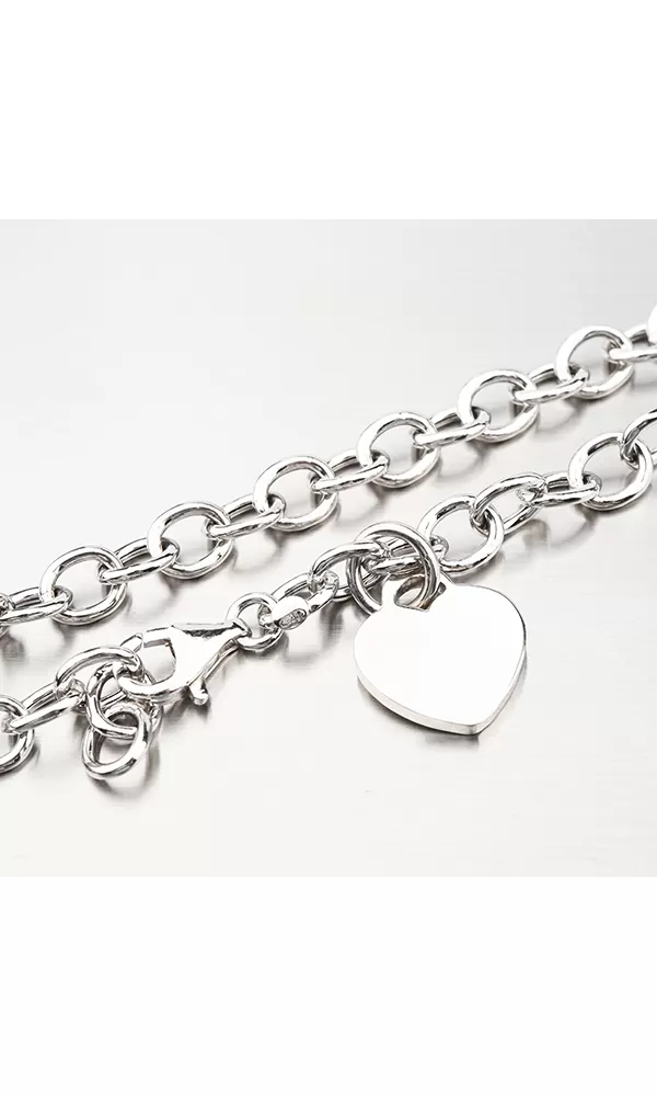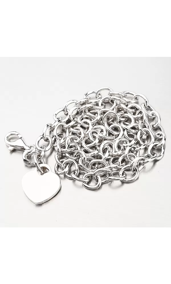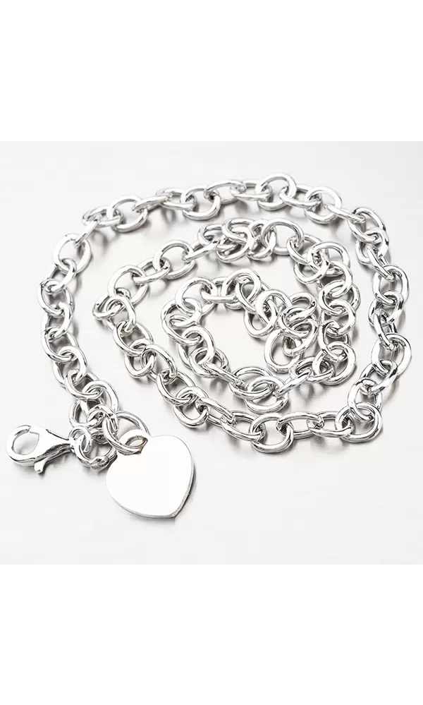 Masívny náhrdelník z dutých oválnych očiek, ktorý je zdobený na konci pri karabíne lesklým srdiečkom. Na srdce je možné vyryť Vami vybraný text – napr. dátum, meno či symbol. Opis rytiny prosím uveďte do kolónky "rytina".